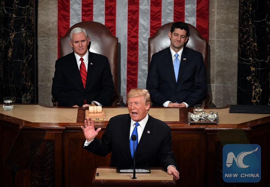 WASHINGTON, Jan. 31 (Xinhua) -- In his first-ever State of the Union (SOTU) address, U.S. President Donald Trump called for unity in Washington in a bid to get both parties on the same page and pass an agenda he said would bring tremendous benefit to Americans.