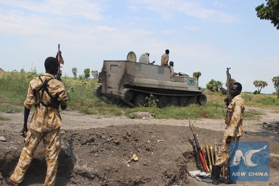 Photo taken on Oct. 16, 2016 shows South Sudan's government soldiers at a battle field in Alelo near South Sudan's northern town of Malakal.(Xinhua/Gale Julius)