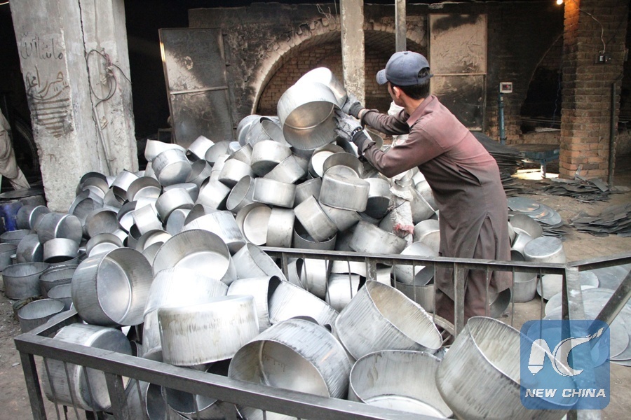 File Photo: An Afghan man works at a local aluminum factory in Nangarhar province, Afghanistan, Dec. 19, 2016. (Xinhua/Rahman Safi)