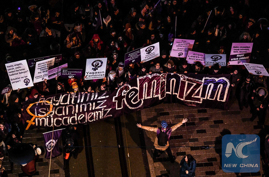 ISTANBUL, March 8 (Xinhua) -- More than 2,000 women on Thursday staged a parade in central Istanbul to show a united stance against growing violence and sexual abuses by men to mark the International Women's Day.