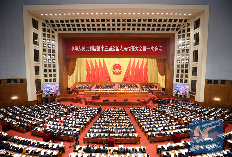 The fourth plenary meeting of the first session of the 13th National People's Congress (NPC) is held at the Great Hall of the People in Beijing on March 13, 2018. (Xinhua/Yao Dawei)