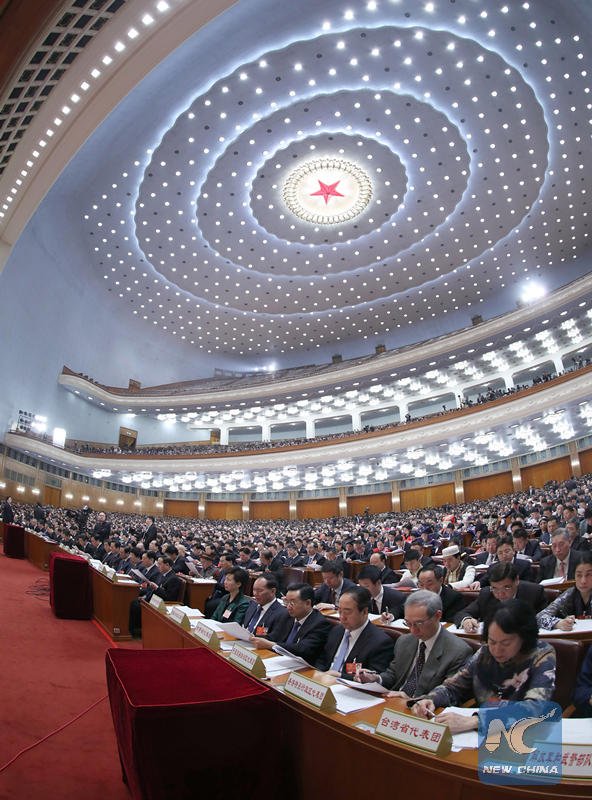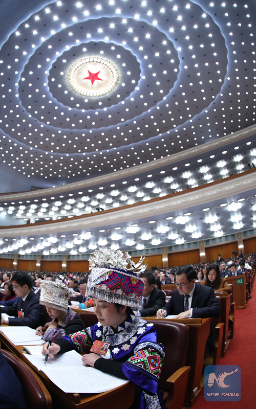 Deputies to the 13th National People's Congress (NPC) attend the fourth plenary meeting of the first session of the 13th NPC at the Great Hall of the People in Beijing on March 13, 2018. (Xinhua/Wang Ye)