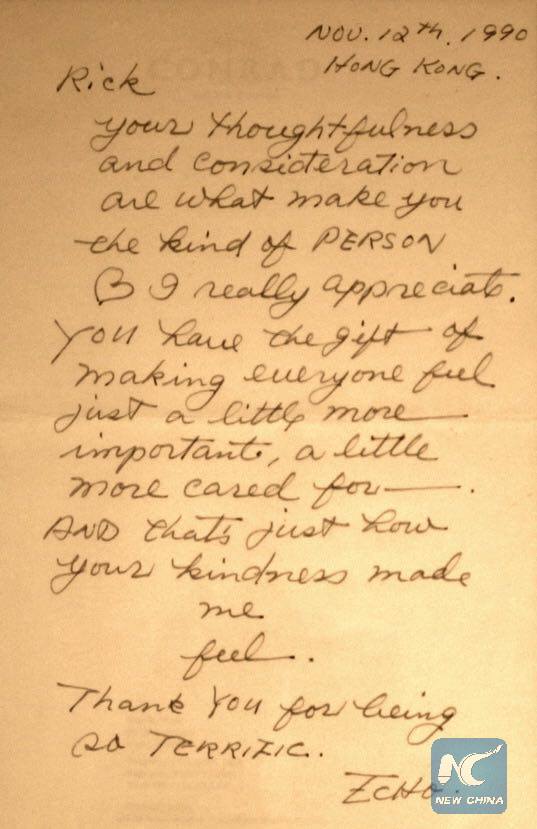 A letter dated Nov. 12, 1990 in Hong Kong from San Mao to Rick O'Shea. (Photo provided by Rick O'Shea)