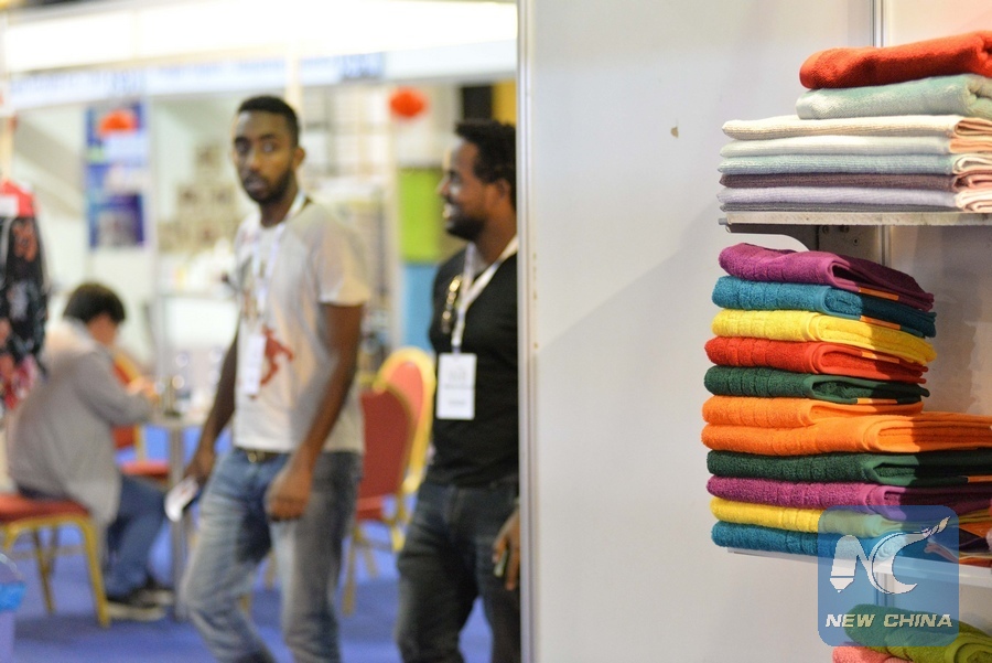 Photo taken on Oct. 3, 2017 shows some of the displayed items during the African Sourcing and Fashion Week in Addis Ababa, capital of Ethiopia. Africa's main trade show for cotton, textile, apparel, home and technology industries kicked off here on Tuesday. The African Sourcing and Fashion Week which will last until Friday, has gathered some 230 international producers and exporters from 25 countries. (Xinhua/Michael Tewelde)