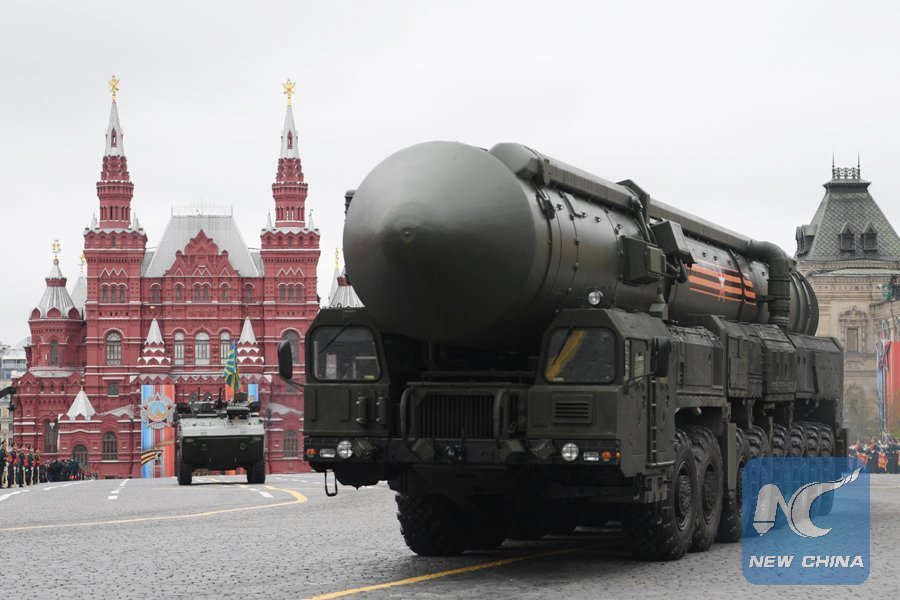 In this file photo taken on May 09, 2017, a Russian Yars RS-24 intercontinental ballistic missile system rides through Red Square during the Victory Day military parade in Moscow on May 9, 2017. (Xinhua/AFP)