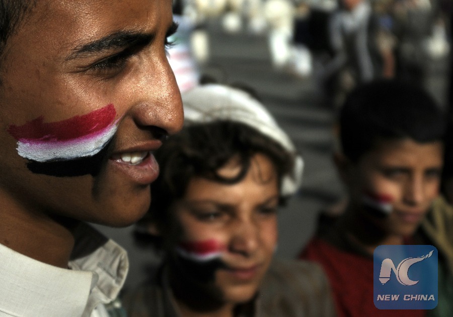 Yemeni protesters take part in an anti-U.S. protest in Sanaa, Yemen, on May 20, 2017. U.S. President Donald Trump began an official visit to Saudi Arabia on the same day. (Xinhua/Mohammed Mohammed)