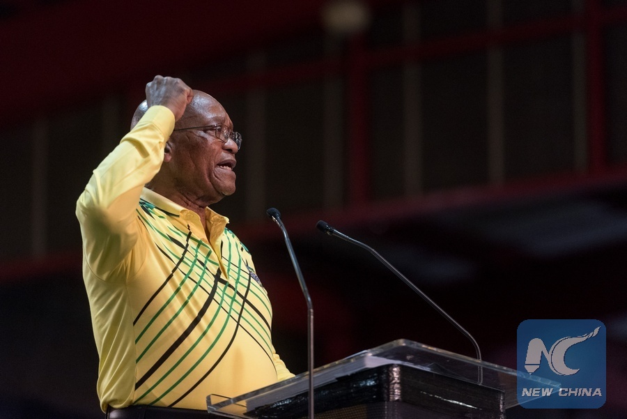 File photo taken on Dec. 16, 2017 shows that South African President Jacob Zuma addresses the conference in Johannesburg, South Africa. Zuma declared his resignation on Feb. 14, 2018. (Xinhua/David Naicker)