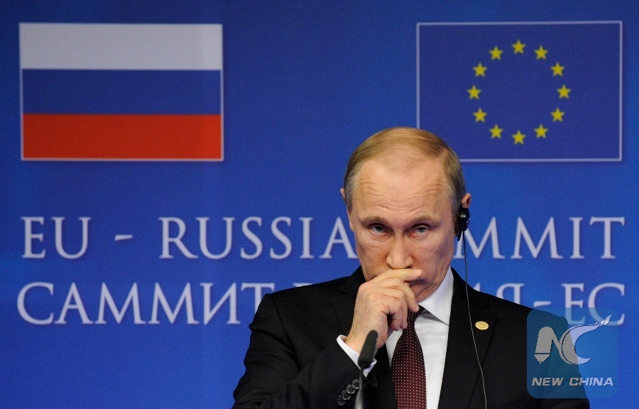In this file photo taken on Jan. 28, 2014, Russian President Vladimir Putin gestures as he takes part in a joint press conference with EU Council president and European Commission president following an EU-Russia summit at the EU Headquarters in Brussels. (Xinhua/AFP)
