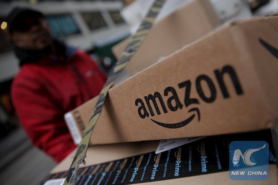 Amazon boxes are seen stacked for delivery in the Manhattan borough of New York City, January 29, 2016. (Xinhua/REUTERS)