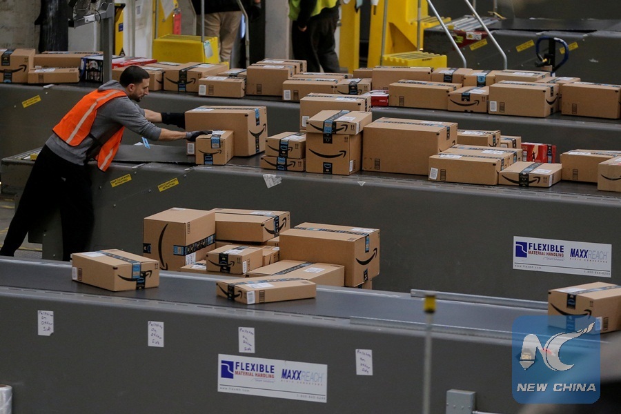 A worker prepares packages to be shipped inside of anAmazon fulfillment center in Robbinsville, New Jersey, U.S., November 27, 2017. (Xinhua/REUTERS)