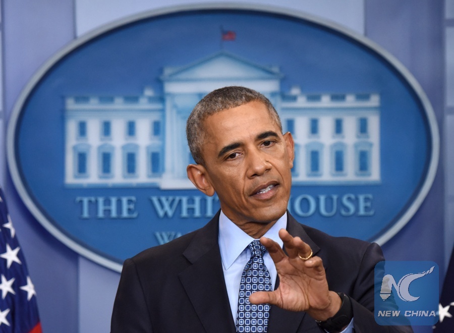 Barack Obama speaks during his final press conference as U.S. President at the White House in Washington D.C., the United States, on Jan. 18, 2017. (Xinhua/Yin Bogu)