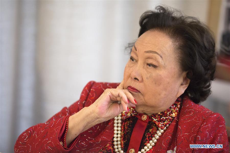 Photo taken at the U.N. headquaters in New York, the United States, on June 17, 2016 shows Anna Chan Chennault, widow of US general Claire Lee Chennault who headed the wartime Flying Tigers pilots to fight against Japanese invaders in China during World War II. Anna Chan Chennault, or Chen Xiangmei, died on March 30 at her home in Washington, The Washington Post reported on April 3, 2018. (Xinhua/Li Muzi)