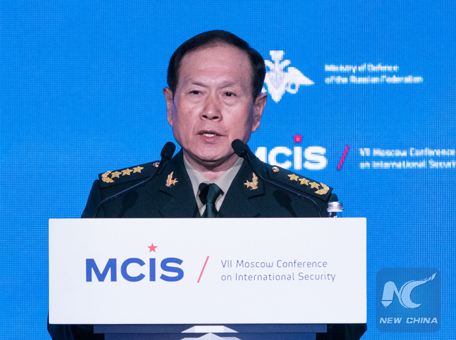 Chinese State Councilor and Minister of National Defense Wei Fenghe speaks at the seventh Moscow Conference on International Security in Moscow, Russia, April 4, 2018. (Xinhua/Wu Zhuang)