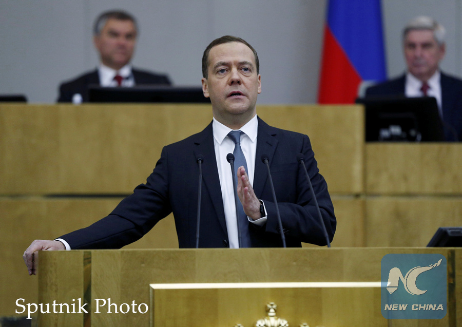MOSCOW, April 11 (Xinhua) -- Moscow is considering measures to counter new U.S. sanctions, Russian Prime Minister Dmitry Medvedev said Wednesday.