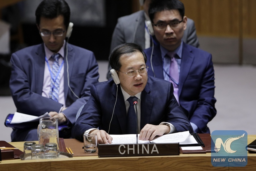 File Photo: China's Permanent Representative to the United Nations Ma Zhaoxu (Front) addresses the Security Council meeting on Syria situation at the UN headquarters in New York, March 12, 2018. (Xinhua/Li Muzi)