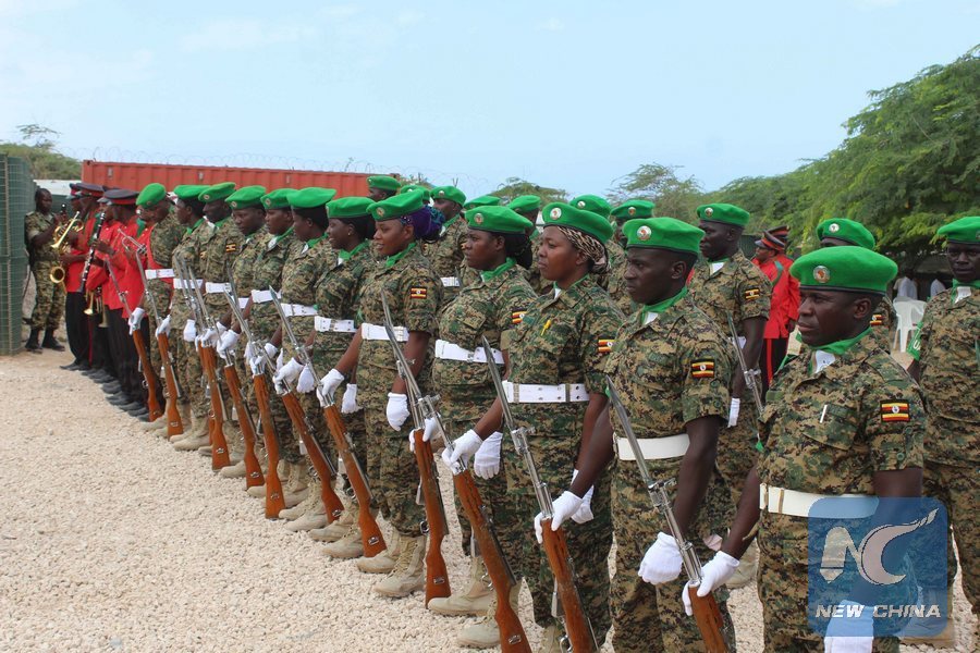 African Union forces take part in the the Africa Day celebration at the African Union Mission in Somalia (AMISOM) Headquarters in Mogadishu, capital of Somalia, May 25, 2017. Africa Day is celebrated annually on May 25 within the African continent to mark the formation of the Organization of African Unity (OAU) on May 25, 1963 and the African Union (AU) in 2002, as well as celebrate the continent's progress. (Xinhua/Faisal Isse)