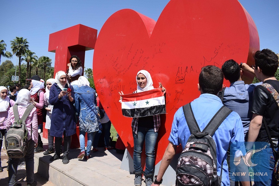 "Today we are here to celebrate our army forces, which brought back peace and security to the capital after years of rebels attacks, and also confronted foreign military strikes so it's about time we celebrate in this square without fear," Jamal Salem, a 22-year-old university student, told Xinhua while covering his shoulders with the Syrian flag.