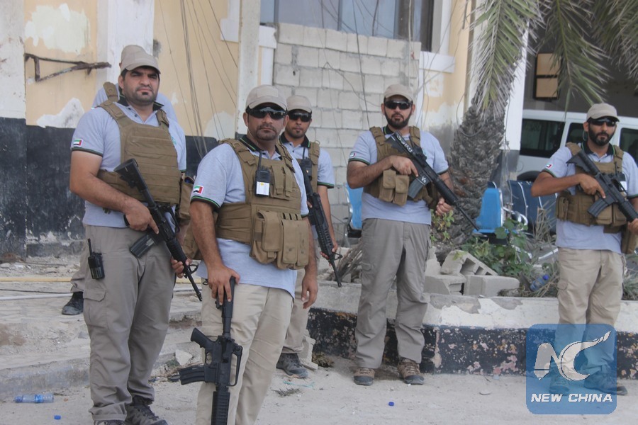 File photo shows United Arab Emirates security forces stand guard as UAE foreign minister Sheikh Abdullah bin Zayed bin Sultan Al Nahyan arrives in Mogadishu, Somalia, June 7, 2015. (Xinhua/Faisal Isse Hussein)