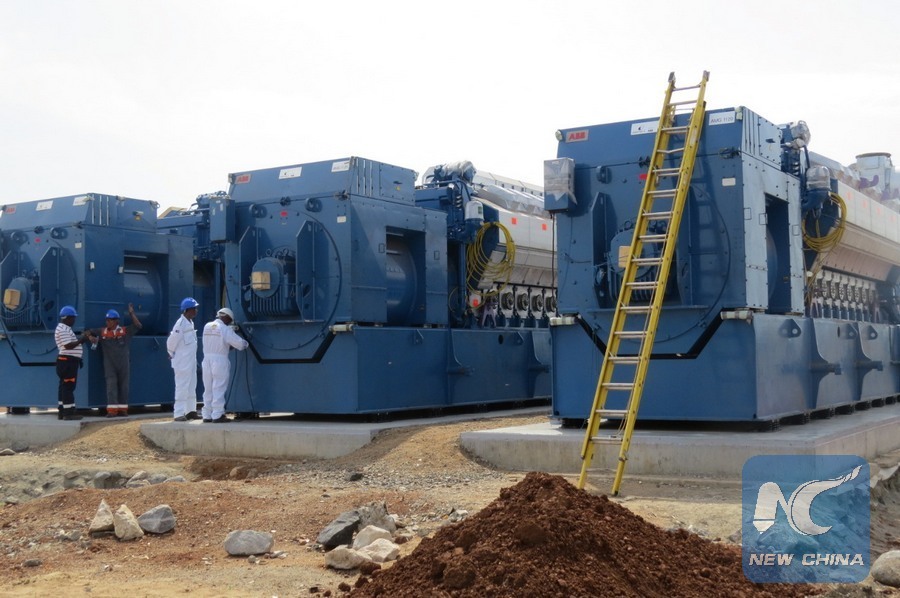 Workers go about their work at a power plant site, in Juba, capital of South Sudan, April 19, 2017. South Sudan on Thursday installed machines at the newly built 100 MW power plant in the capital that will increase access to electricity from the meager one percent to 21 percent by 2020. (Xinhua/Denis Elamu)