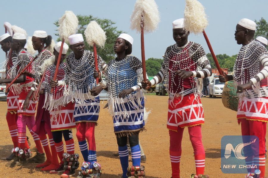 Dancers perform during the installation of power equipments at a power plant site, in Juba, capital of South Sudan, April 19, 2017. (Xinhua/Denis Elamu)