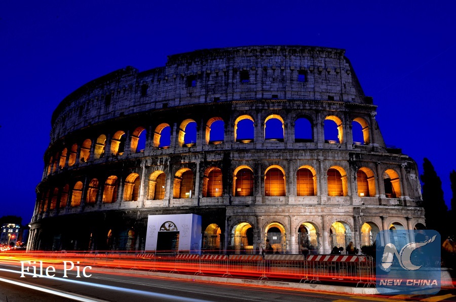 Photo taken on June 1, 2013 shows the night view of the Colosseum in Rome, Italy. (Xinhua/Xu Nizhi)