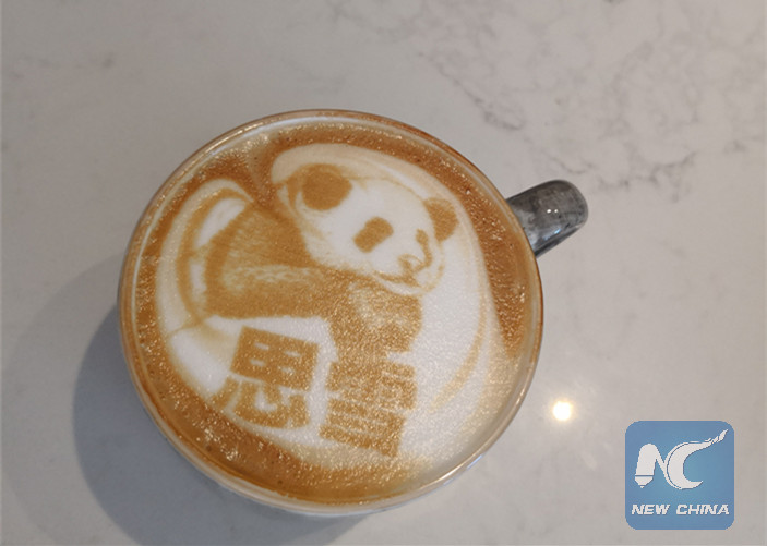 An image of Chinese panda named "Si Xue" by 3D printing on the milk foam of a cup of coffee. (Xinhua/Du Zhen)