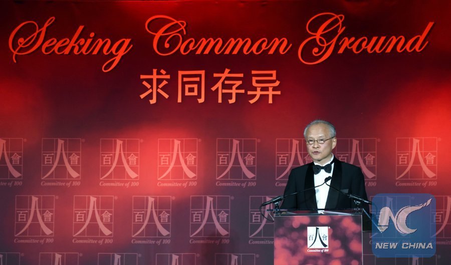 Chinese Ambassador to the United States Cui Tiankai addresses the 2017 Awards Gala Dinner held by Committee of 100 in Washington D.C., capital of the United States, May 18, 2017. (Xinhua/Yin Bogu)