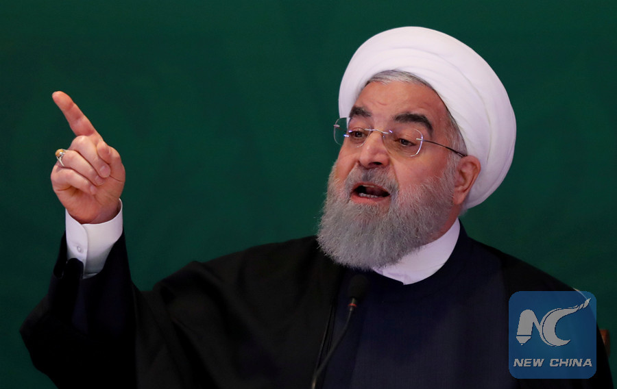 TEHRAN, May 8 (Xinhua) -- Iran's President Hassan Rouhani said Tuesday that the Islamic republic will remain in the nuclear deal with other signatories of the Joint Comprehensive Plan of Action (JCPOA) without the United States.