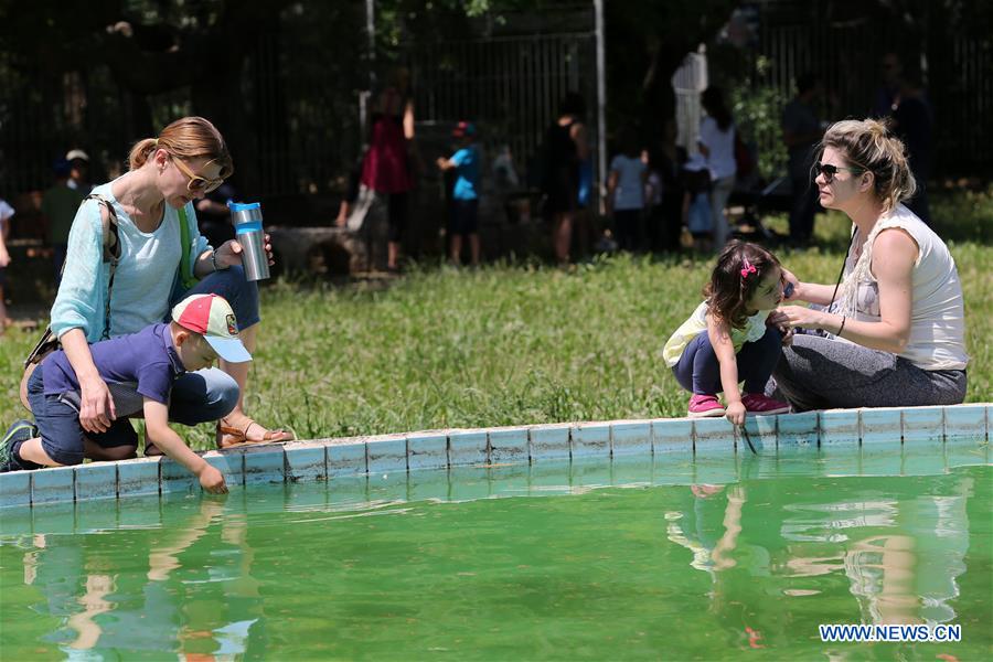 Mothers spend time with their children during celebrations for Mother's Day in Athens, Greece, on May 13, 2018. (Xinhua/Marios Lolos)