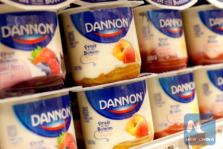 File Photo: Containers of Danone's Dannon Yogurt are displayed in a supermarket in New York City, U.S., February 15, 2017. (Xinhua/REUTERS)