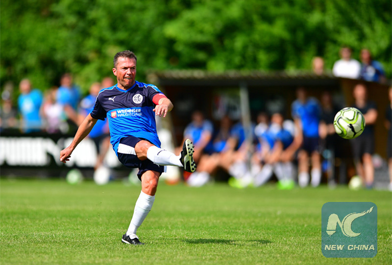 German footballer Lothar Matthaeus in action during the German regional league north soccer match in Herzogenaurach, Germany on May 13, 2018. (Matthias Merz/DPA)