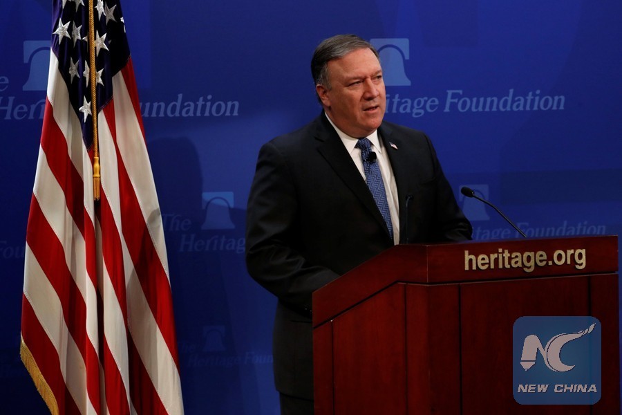 U.S. Secretary of State Mike Pompeo delivers remarks on the Trump administration's Iran policy at the Heritage Foundation in Washington, U.S. May 21, 2018. (Xinhua/REUTERS)