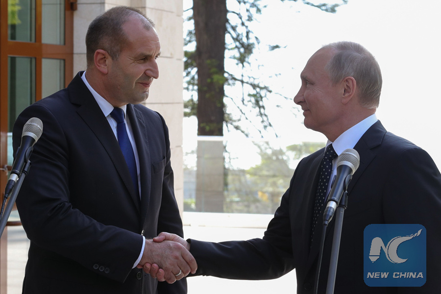 MOSCOW, May 22 (Xinhua) -- Russian President Vladimir Putin and visiting Bulgarian President Rumen Radev on Tuesday agreed to strengthen ties between the two countries by enhancing trade and economic cooperation, the Kremlin said.