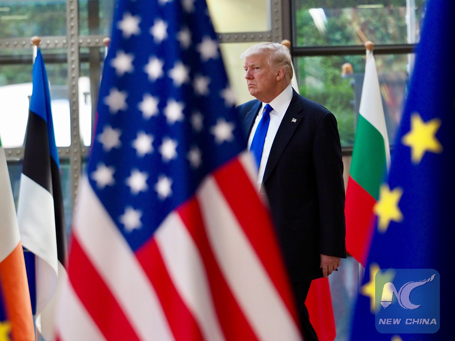U.S. President Donald Trump walks prior to the EU-USA Leaders' Meeting at the European Council headquarters, in Brussels, Belgium, May 25, 2017. (Xinhua/Thierry Monasse)