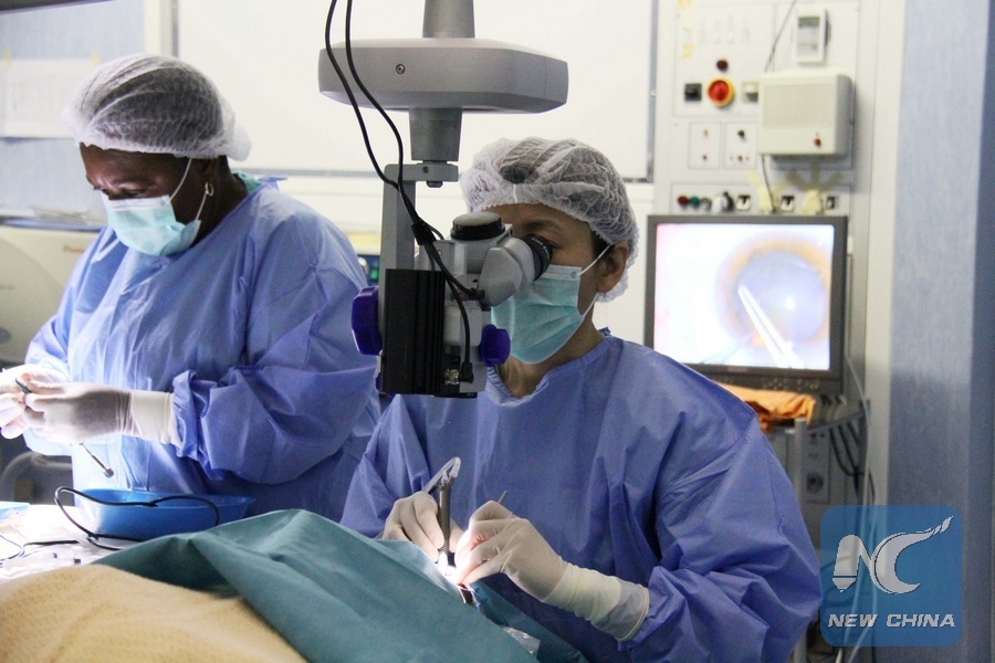 File photo shows a Chinese doctor conducts cataracts surgeries at Windhoek Central Hospital in Windhoek, Namibia on May 15, 2018. In many other developing countries, cataracts are the main cause of blindness. (Xinhua/Lyu Tianran)