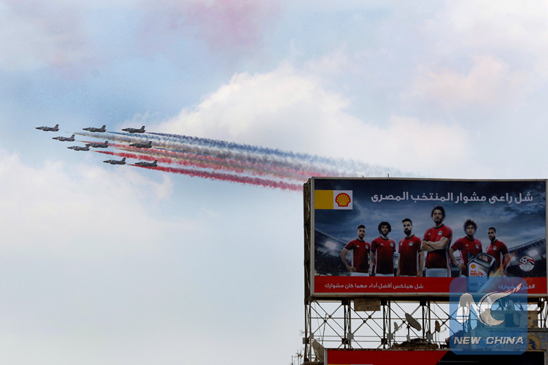 An air show is seen ahead of al-Sisi's sworn-in ceremony in Cairo, Egypt on June 2, 2018. (Xinhua/Ahmed Gomaa)