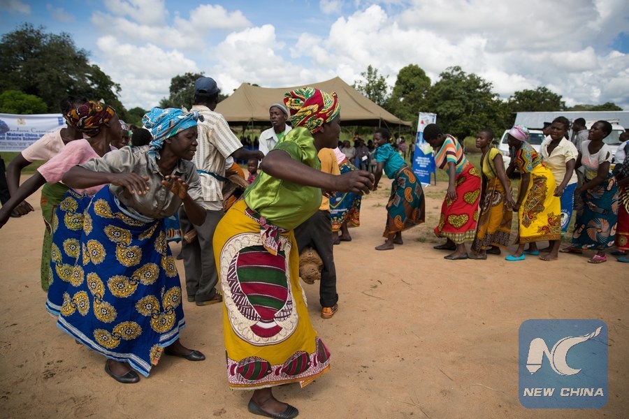 Villagers perform a dance in Kombeza area, central Malawi's Salima district, March 16, 2018. (Xinhua/Peng Lijun)