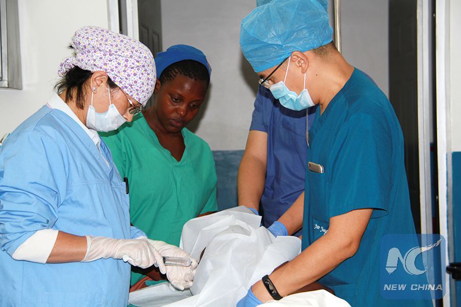 Chinese doctors and local nurse anesthetize a patient at China-Uganda Friendship Hospital, located in the capital Kampala, Uganda, June 6, 2018. (Xinhua/Zhang Gaiping)