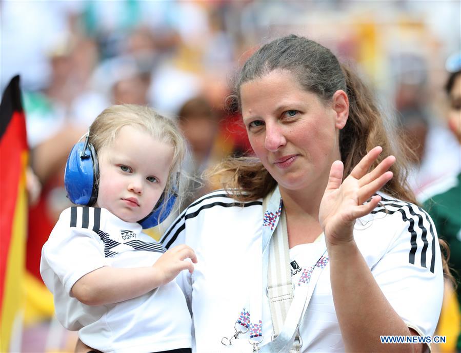 Fans of Germany are seen prior to a group F match between Germany and Mexico at the 2018 FIFA World Cup in Moscow, Russia, June 17, 2018. (Xinhua/Cao Can)