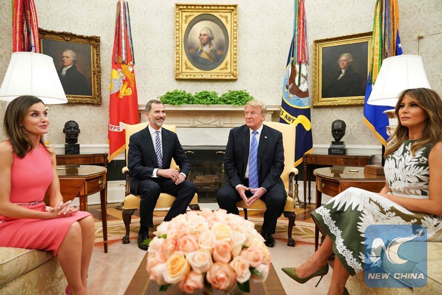WASHINGTON, June 20 (Xinhua) -- The White House said here Wednesday that President Donald Trump and visiting Spanish King Felipe VI discussed bilateral concerns on security, trade and energy.