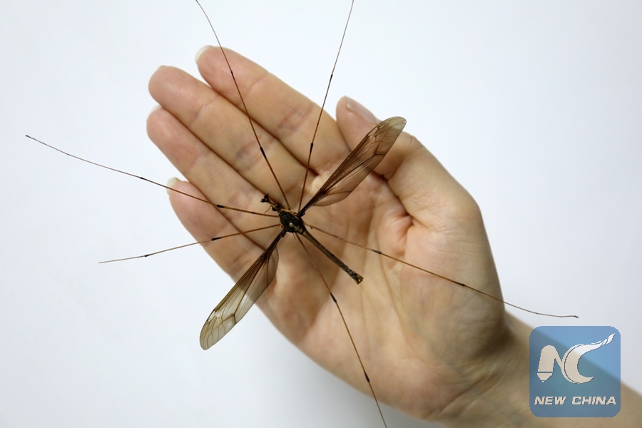 File Photo: A giant mosquito with a wing span of 11.15 centimeters is shown at the Insect Museum of West China in Chengdu, capital of SW China's Sichuan Province, April 11, 2018. (Xinhua/Insect Museum of West China)