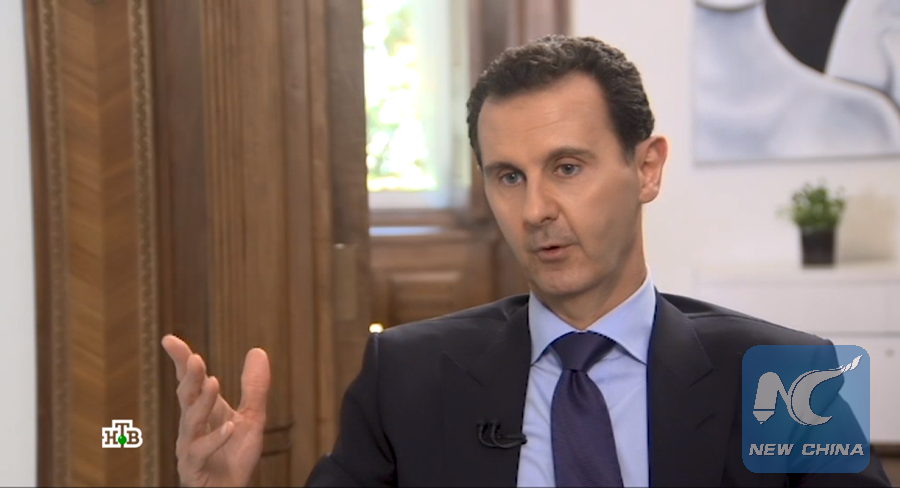 This photo taken from a footage published on June 24, 2018 shows Syrian President Bashar al-Assad in an interview with Russia's NTV television channel. (Xinhua)