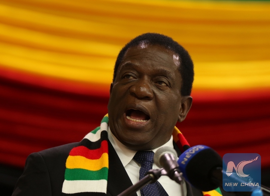Zimbabwean President Emmerson Mnangagwa addresses a meeting in Harare, Zimbabwe, May 30, 2018. President Emmerson Mnangagwa announced Wednesday that Zimbabwe will hold general elections on July 30. (Xinhua/Shaun Jusa)