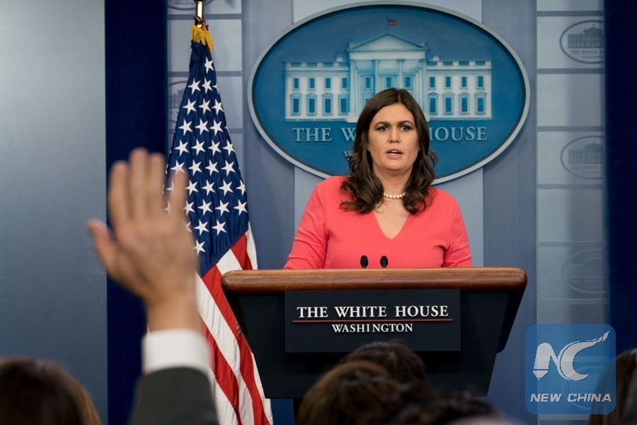 File Photo: White House Press Secretary Sarah Sanders answers questions during a press briefing after U.S. President Donald Trump designated the Democratic People's Republic of Korea (DPRK) as a state sponsor of terror at the White House in Washington D.C. Nov. 20, 2017. (Xinhua/Shen Ting)