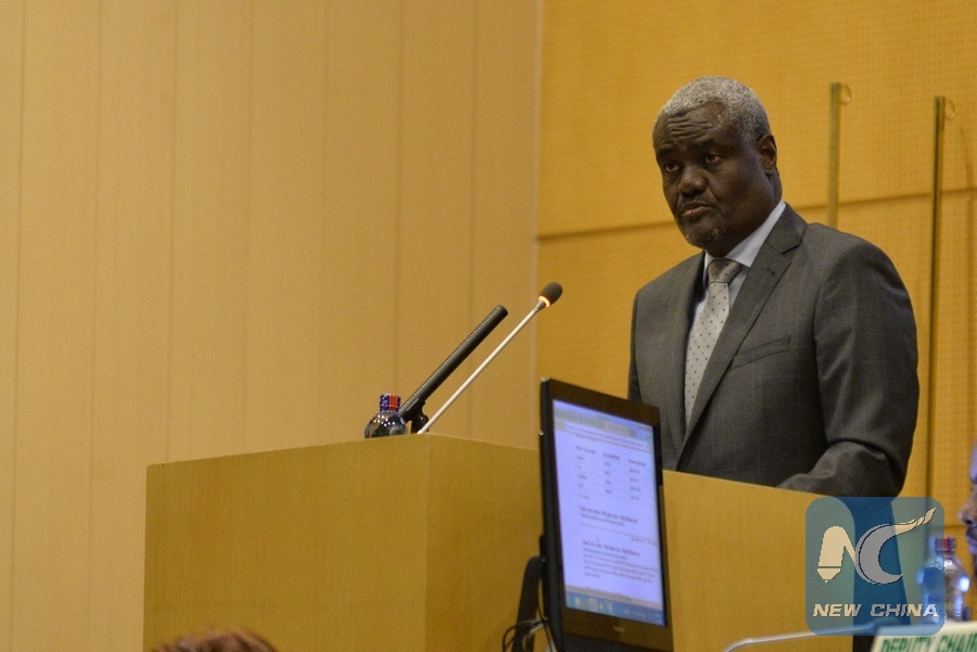 File photo shows Moussa Faki Mahamat Chairperson of African Union (AU) Commission speaks during the 35th ordinary session of the Permanent Representatives Committee (PRC) of the AU in Addis Ababa, capital of Ethiopia, Jan. 22, 2018. (Xinhua/Michael Tewelde)