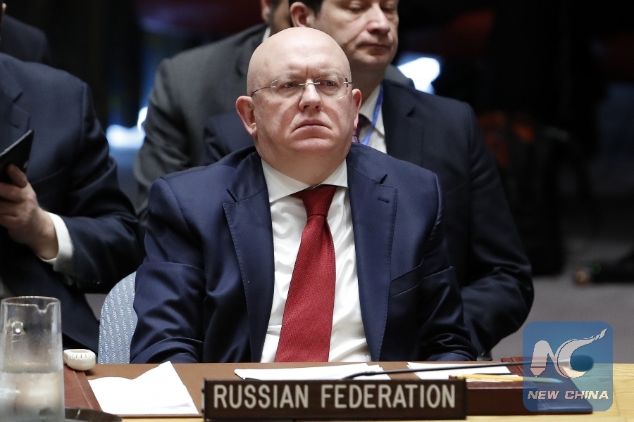 File Photo: Russian Ambassador to the United Nations Vassily Nebenzia attends a Security Council emergency meeting on Syria at the UN headquarters in New York, April 14, 2018. (Xinhua/Li Muzi)