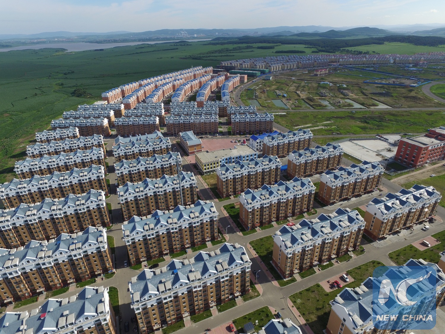 Newly built residential buildings in Qitaihe City, another coal-rich city in northeast China's Heilongjiang Province, July 14, 2016. (Photo provided to Xinhua)