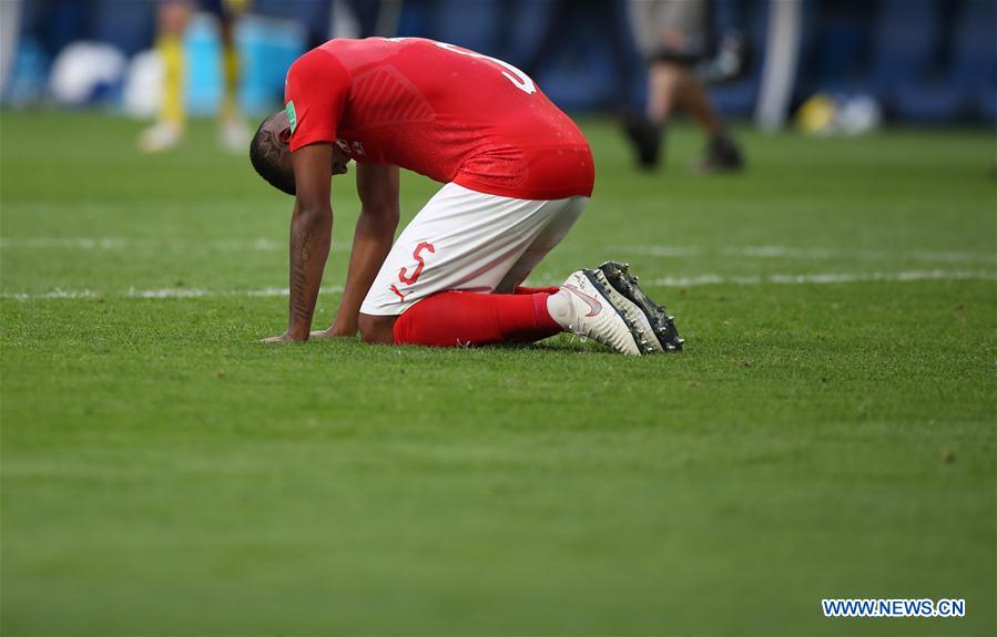 Manuel Akanji of Switzerland is seen after the 2018 FIFA World Cup round of 16 match between Switzerland and Sweden in Saint Petersburg, Russia, July 3, 2018. Sweden won 1-0 and advanced to the quarter-final. (Xinhua/Wu Zhuang)