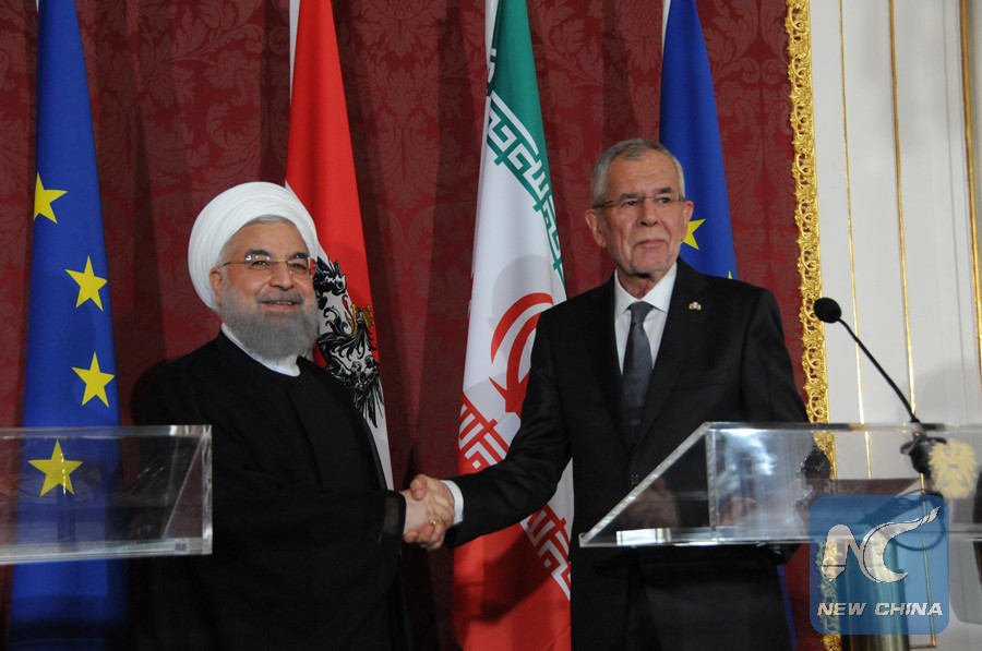 Iranian President Hassan Rouhani (L) and his Austrian counterpart Alexander Van der Bellen attend a press conference in Vienna, Austria, on July 4, 2018. (Xinhua/Liu Xiang)