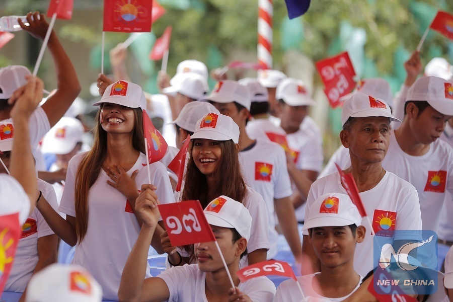 Supporters of the Khmer Will Party attend an election campaign in Phnom Penh, Cambodia on July 7, 2018. (Xinhua/Phearum)